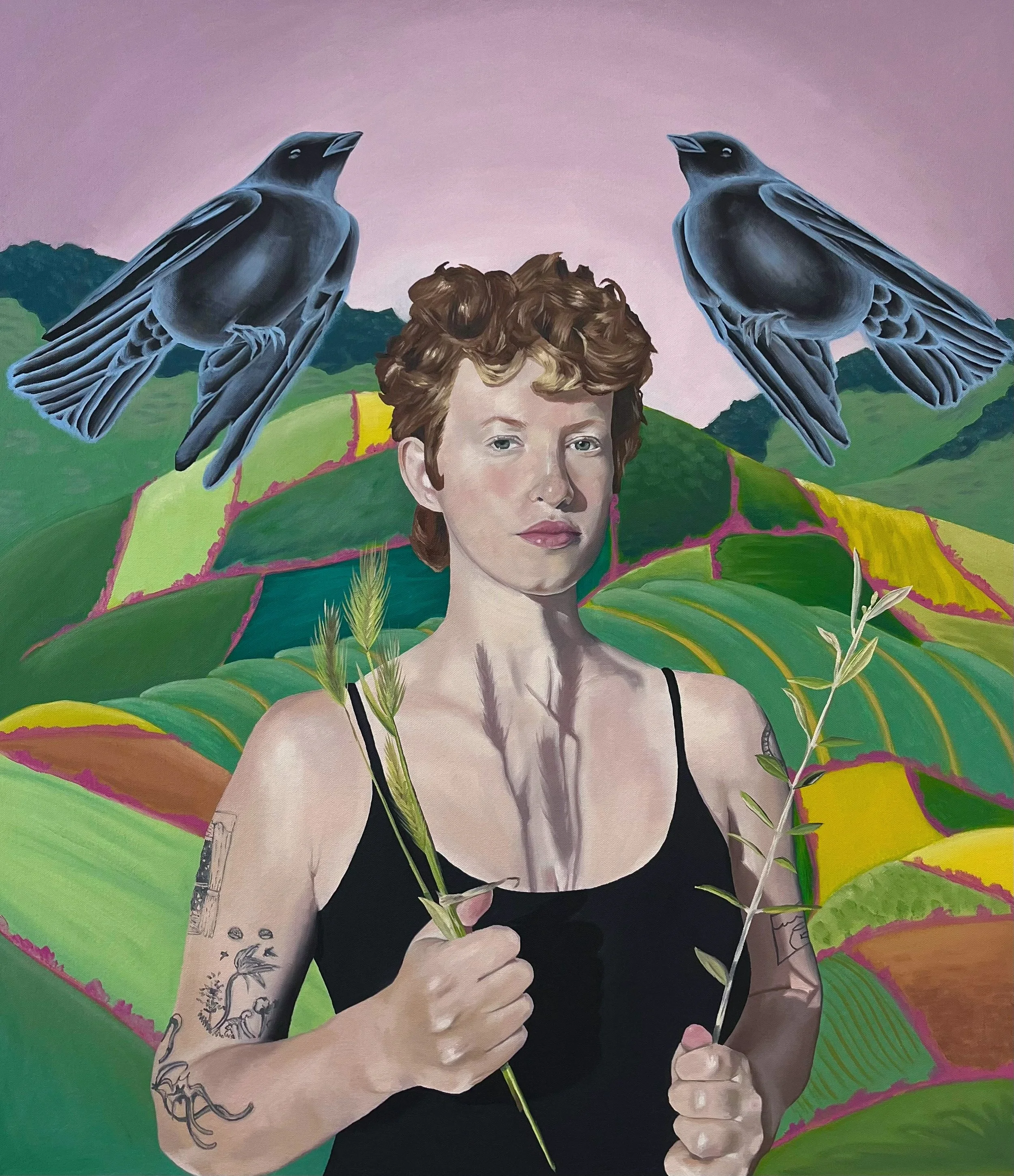 Tamar Bordwin is an artist living and working in Brooklyn, New York. She works primarily in oil paint, using it to bring the forests and fields of her imagination up into the visual world. In her work, she blends realism and abstraction, portrait and landscape, whimsy and solemnity. She is currently working on a series of paintings stretched on custom-built hide-tanning frames in which she examines the place of ancient handcraft in the drastically human-altered world of the present. Living in a city and maintaining a deep affinity for wild and rural places, she is using this project to preserve her connection to the natural world and the primitive skills that allowed humans to survive within it.